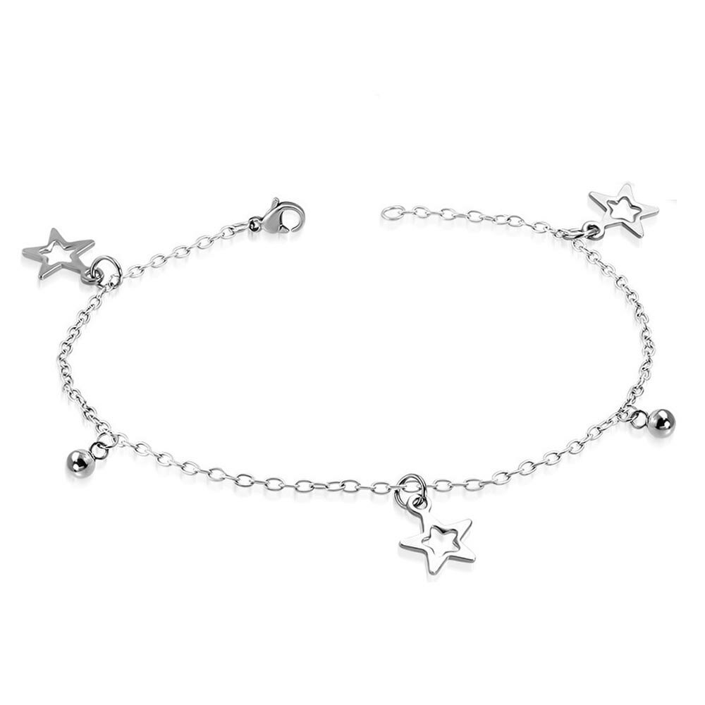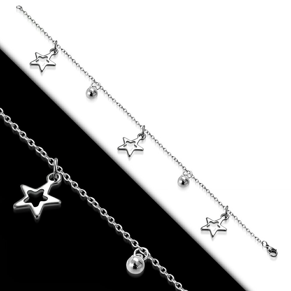 星とボールのチャームが揺れるシンプル綺麗なサージカルステンレス316L製のアンクレット。