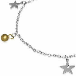 星の中に星をくり貫いたチャームとゴールドボールチャームをセットしたアンクレット。