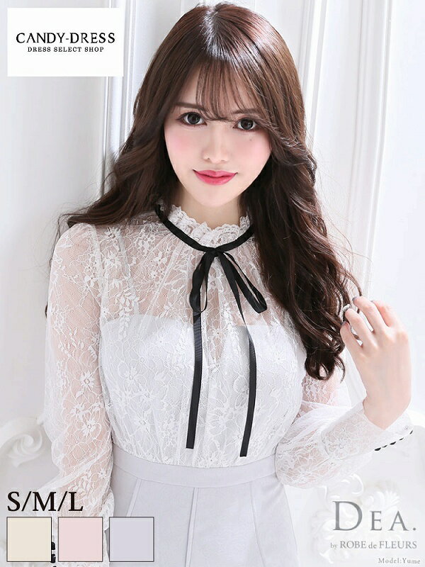 S/M/L 送料無料 DEA. by ROBE de FLEURS/ディアバイローブドフルール フラワーレース×ジャガード切り替えハイネックリボン長袖タイトミニドレス DE2125 キャバドレス キャバ カラー ミニ丈 ミニドレス ワンピ クラブ ワンピース 長袖 チョーカー robedefleurs