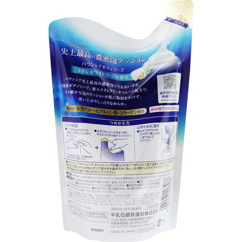 バウンシアボディソープ ホワイトソープの香り 詰替用 400ml牛乳石鹸共進社 牛乳石鹸 バウンシア ボディーソープ ボディ 体 身体 からだ 洗う 泡 高保湿 シアバター ヒアルロン酸 コラーゲン 詰め替え