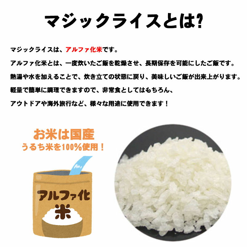 マジックライスとは? マジックライスは、アルファ化米です。