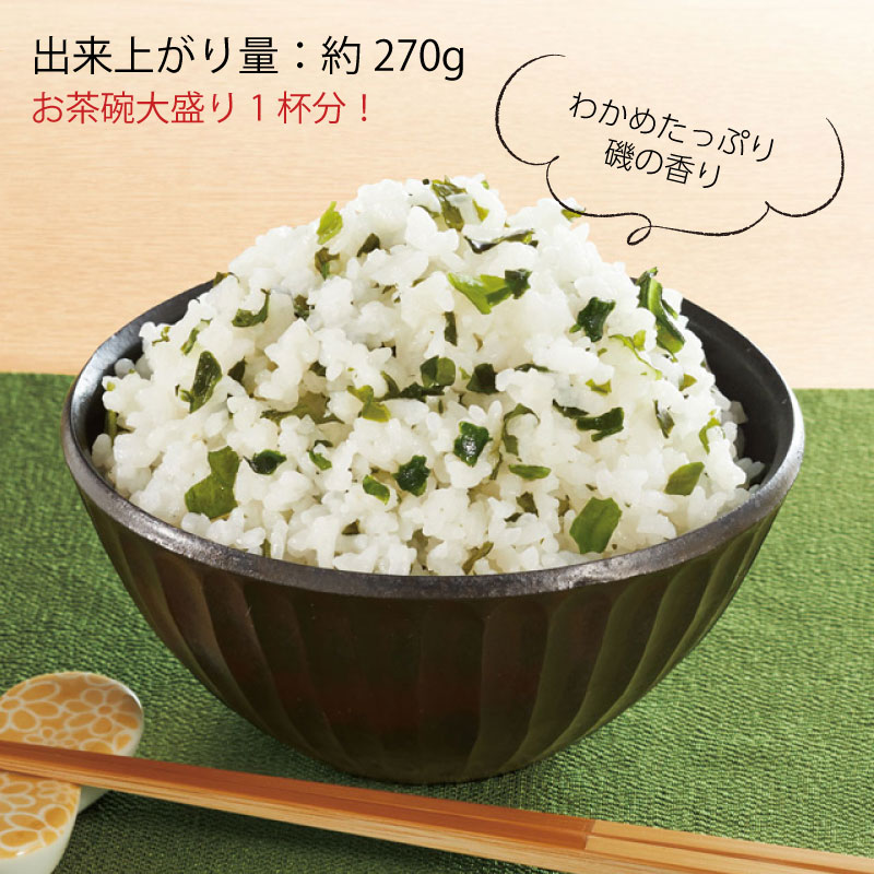 簡便さはもちろんのこと、国産のうるち米を100%使用し、わかめたっぷりで磯の香り豊かな人気の一品です。