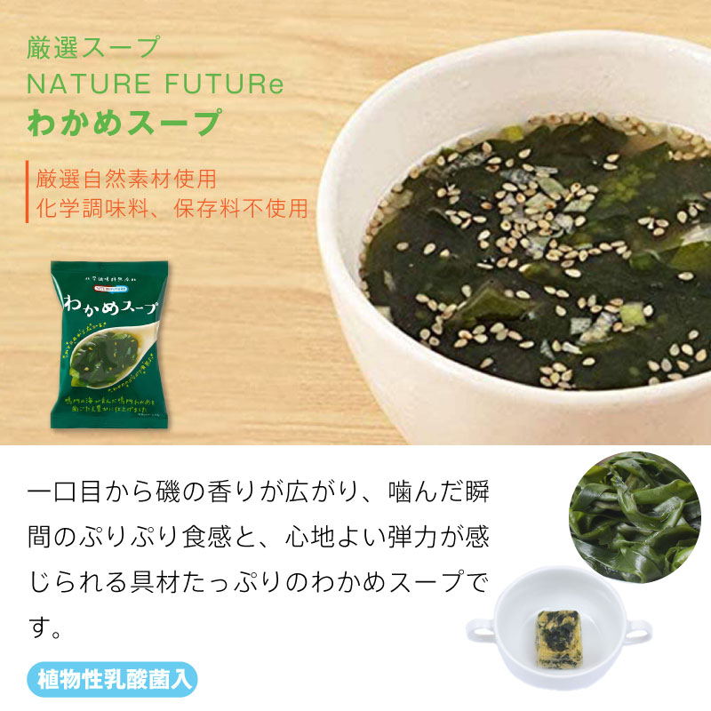 ●製造販売元株式会社コスモス食品 非常食 コスモス食品 おかず わかめ スープ フリーズドライ 化学調味料無添加 保存食 携帯食 アウトドア 調理済 携帯食 携帯食料 バーベキュー キャンプ トレッキング 登山 携行食 行動食 雪山非常食 おかず コスモス食品 厳選スープ NATURE FUTURe わかめスープ 化学調味料無添加 10袋非常食 おかず コスモス食品 厳選スープ NATURE FUTURe わかめスープ 化学調味料無添加 10袋美味しいスープは、美味しい素材から。
