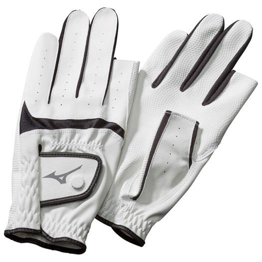 ◆MIZUNO◆ミズノC3JGP802-01手袋合皮指出しタイプ(両手)(グラウンド・ゴルフ)[ホワイト×ブラック]「3Dストレッチ」構造で手の動きにピッタリフィット![GG/グラウンドゴルフ/グランドゴルフ/ごるふ/グローブ]【RCP】