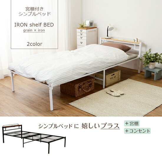 [ラインナップ] 宮棚なし&コンセントなし 宮棚付き&コンセント付き シングルベッド 宮棚付き&コンセント付き 脱着可能なコンセント付き棚板が特徴的なスチール製シングルベッド このベッドは、布団の湿気が気にならない、通気性の良いシングルベッドです。