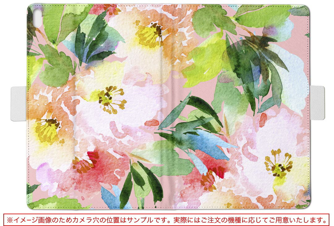 Mebius Pad SHARP シャープ mebiuspad LLサイズ 手帳型 タブレットケース カバー レザー フリップ ダイアリー 二つ折り 革 012057 花 植物 パステル