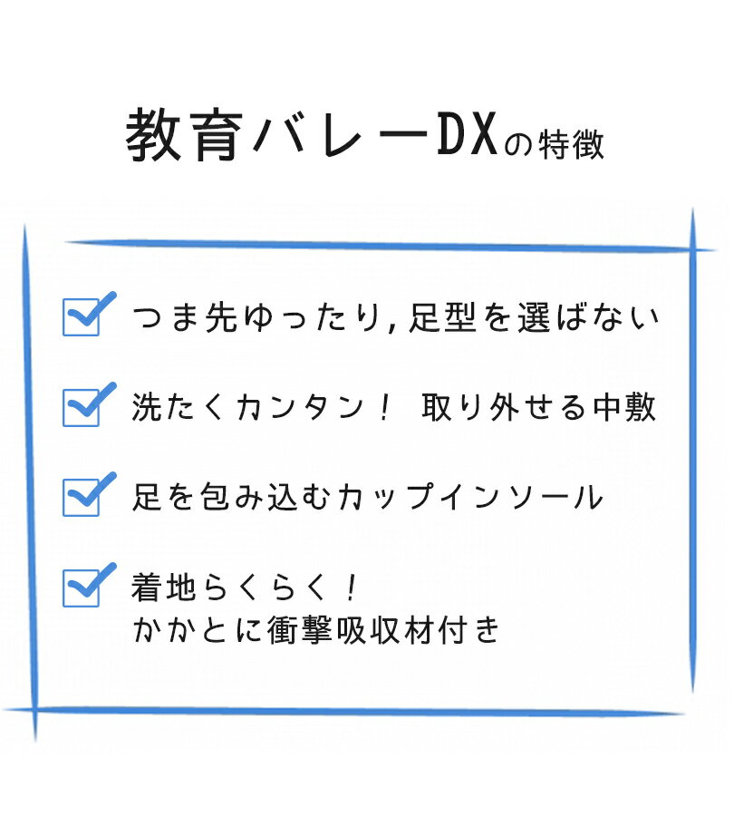 お子様の足の成長促進にスポットをあてて細かな部分まで丁寧につくられた、教育バレーDXシューズです。